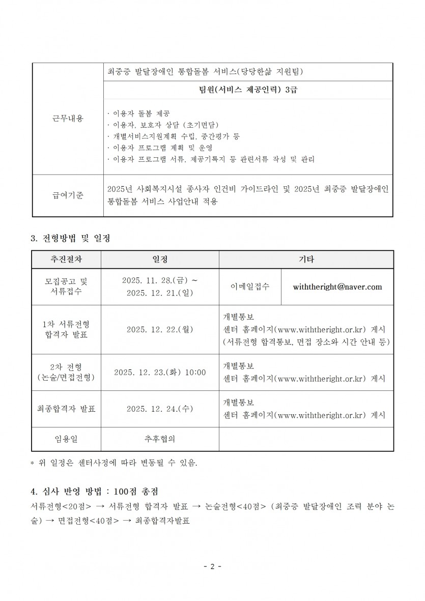 종사자 채용 재공고(최중증 발달장애인 통합돌봄 주간 개별형 1:1지원 서비스 종사자_출산전후휴가 및 육아휴직 대체인력) 페이지 정보 작성자 최고관리자 작성일 25-11-28 19:02 조회 140회 댓글 0건 첨부파일 파일 붙임. 종사자채용공고문통합돌봄서비스 지원인력_인천광역시서구발달장애인평생교육센터_이력서포함.hwp (100.0K) 5회 다운로드 DATE : 2025-11-28 19:02:13 본문 다음글 목록