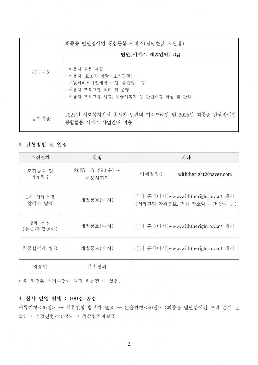 종사자 채용 재공고(최중증 발달장애인 통합돌봄 주간 개별형 1:1지원 서비스 종사자_출산전후휴가 및 육아휴직 대체인력) 페이지 정보 작성자 최고관리자 작성일 25-10-29 17:09 조회 117회 댓글 0건 첨부파일 파일 붙임. 종사자채용공고문통합돌봄서비스 지원인력_인천광역시서구발달장애인평생교육센터_이력서포함.hwp (100.0K) 3회 다운로드 DATE : 2025-10-29 17:09:10 본문 다음글 목록